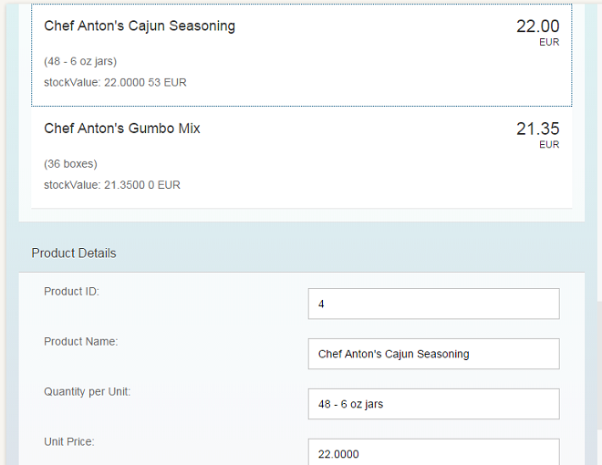#!properties... # Screen titles panel1HeaderText=Data Binding Basics panel2HeaderText=Adress Details panel3HeaderText=Aggregation Binding panel4HeaderText=Product Details # Product list productListTitle=Product List stockValue=Current Stock Value # Product Details ProductID=Product ID ProductName=Product Name QuantityPerUnit=Quantity per Unit UnitPrice=Unit Price UnitsInStock=Number of Units in Stock Discontinued=Discontinued