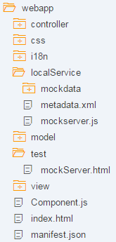 The folder structure of our app project is clearly separating test and productive files after this step. The new test folder now contains a new HTML page mockServer.html which will launch our application in test mode without calling the real service.