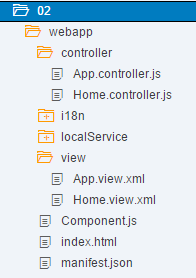 });Create a file Home.controller.js in the webapp/controller folder. The controller for the home view does not contain any custom logic in this step, but we will add some features to it soon. Finally, run the app by calling the webapp/index.html file. This will be the entry point for our app in all the next steps. As you can see, the app is initially displaying the home view that we configured as the default pattern in the routing configuration. We have now successfully enabled routing in the app.