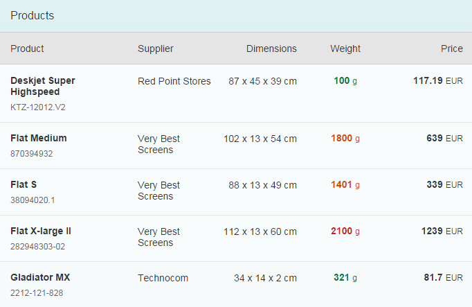 - Supplier, Dimensions and Weight are not particularly important, so we'll