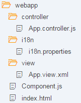 After we have introduced all three parts of the Model-View-Controller (MVC) concept, we now come to another important structural aspect of OpenUI5. In this step, we will encapsulate all UI assets in a component that is independent from our index.html file. Components are independent and reusable parts used in SAPUI5 applications. Whenever we access resources, we will now do this relatively to the component (instead of relatively to the index.html). This architectural change allows our app to be used in more flexible environments than our static index.html page, such as in a surrounding container like the SAP Fiori launchpad.