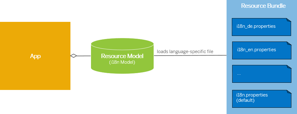 A resource model is instantiated with a bundleName or a bundleURL. The bundle name is the name of the resource bundle and equals a OpenUI5 module name within the require/declare concept. The bundle URL points to a resource bundle. If you use the bundle name, the file must have the .properties suffix. If you do not specify a locale, the system uses the login language: var oModel = new sap.ui.model.resource.ResourceModel({bundleName:"myBundle",locale:"en"});