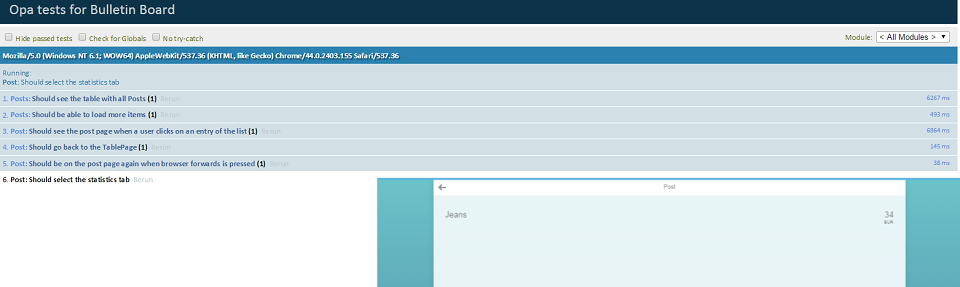 });We extend the PostJourney.js file with a new test. It is important to move the Teardown to the last test, otherwise our app would be removed and the test would not be able to find the Statistics tab.