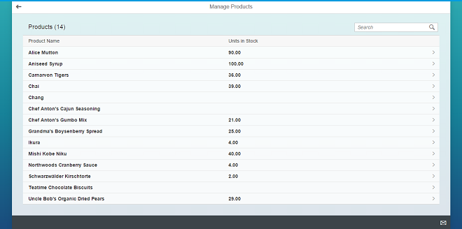 A product has typical properties like ProductName and UnitsInStock as well as a navigation property to a supplier entity referenced by a SupplierID. Of course, the entity has an ID property ProductID. The corresponding EntitySet is Products. The actual test data containing several products is located in the webapp/localService/mockdata/Products.json file.