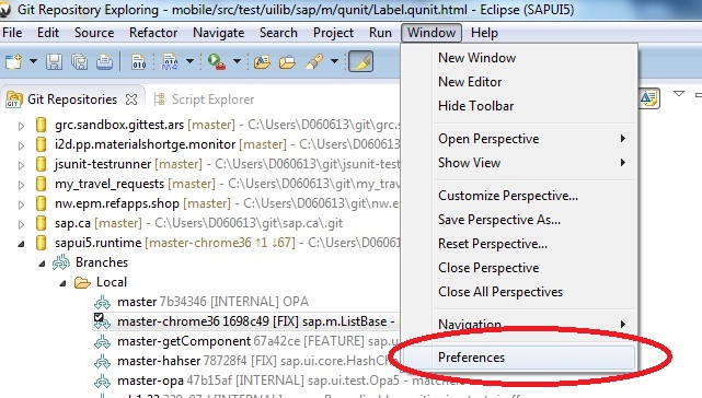 });If you are using eclipse, to import the templates start by calling up Preferences as shown below: