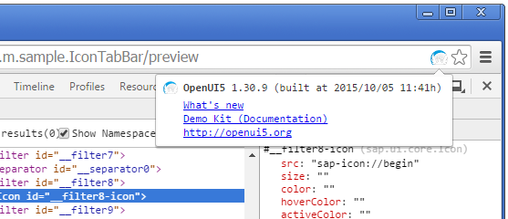 Once installed, the UI5 Inspector is available in Chrome DevTools (by choosing F12). It becomes active when an OpenUI5 app is loaded.